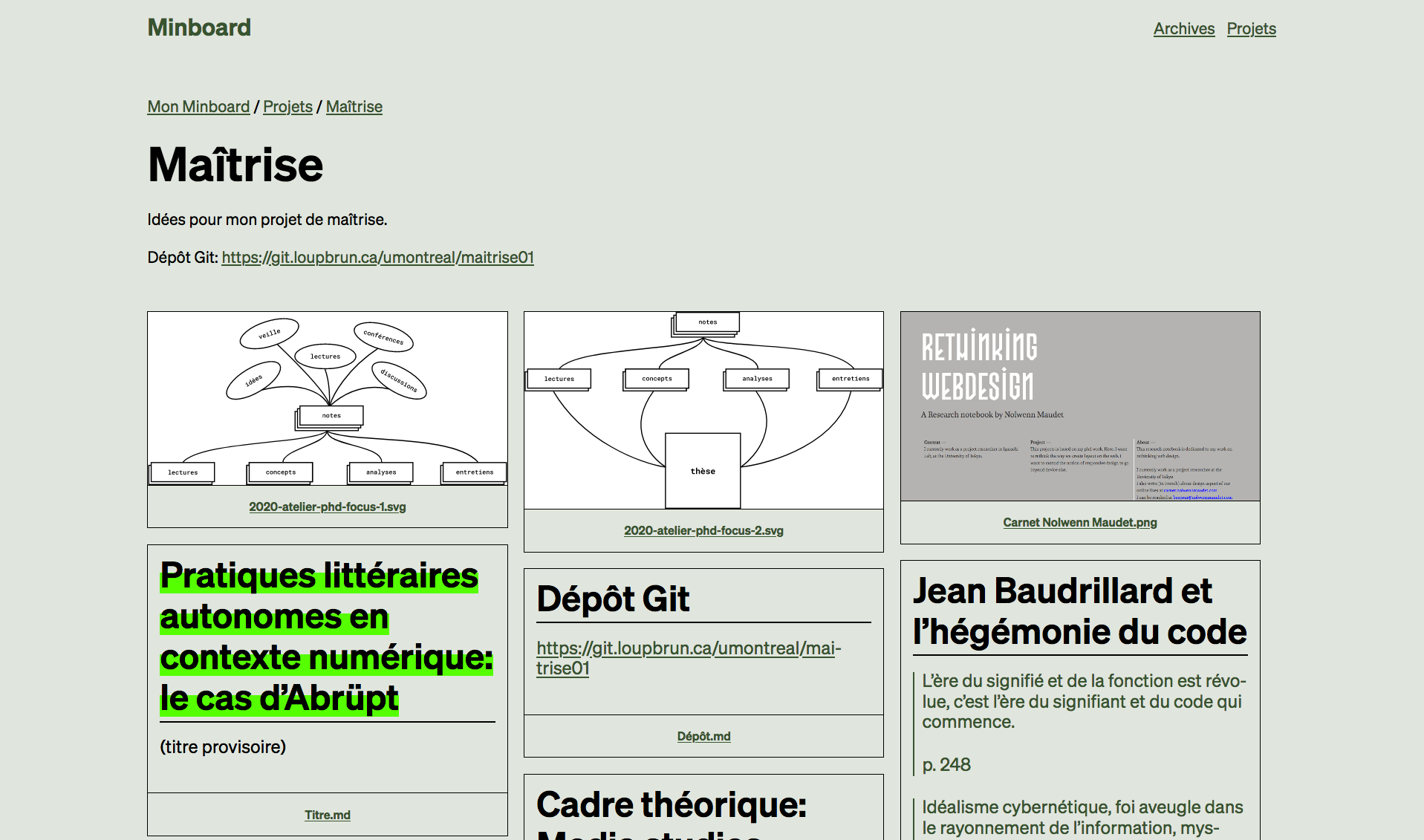 Idées pour mon projet de maîtrise.
